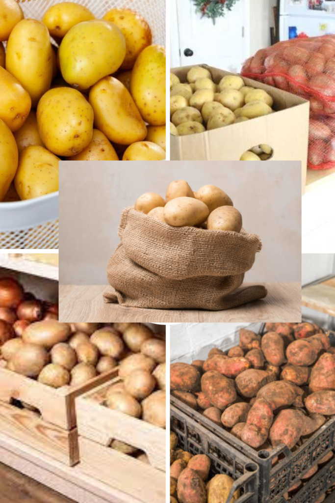 Typically to store your potatoes you want to have a dark and cooler space like a shed or cellar or if you are really lucky a root cellar. Storing your potatoes in wire or wicker baskets or even wooden crates, old plastic veg crates or if nothing else placing them in hessian sacks will will make sure that the potatoes have alot of air flow around them to keep them from “sweating” which will speed up the rotting process. I would not suggest using plastic totes or buckets for that reason either. Having proper airflow is incredibly important, fresh potatoes are a living and yes breathing plant and will indeed cause condensation, which then will sit or accumulate in the bottom of a closed tote or bucket, they will rot incredibly quickly and none of us want to put our hands in rotting potatoes.